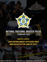 @FOPNATIONAL@GLFOPNATIONAL FRATERNAL ORDER OF POLICENATIONAL FRATERNAL ORDER OF POLICE328 MASSACHUSETTS AVE., NE • WASHINGTON, DC 20002MONTHLY UPDATE:LAW ENFORCEMENT OFFICERS SHOTAND KILLED IN THE LINE OF DUTY3 FEBRUARY 2025JIM PASCOExecutive DirectorPATRICK YOESNational President Message